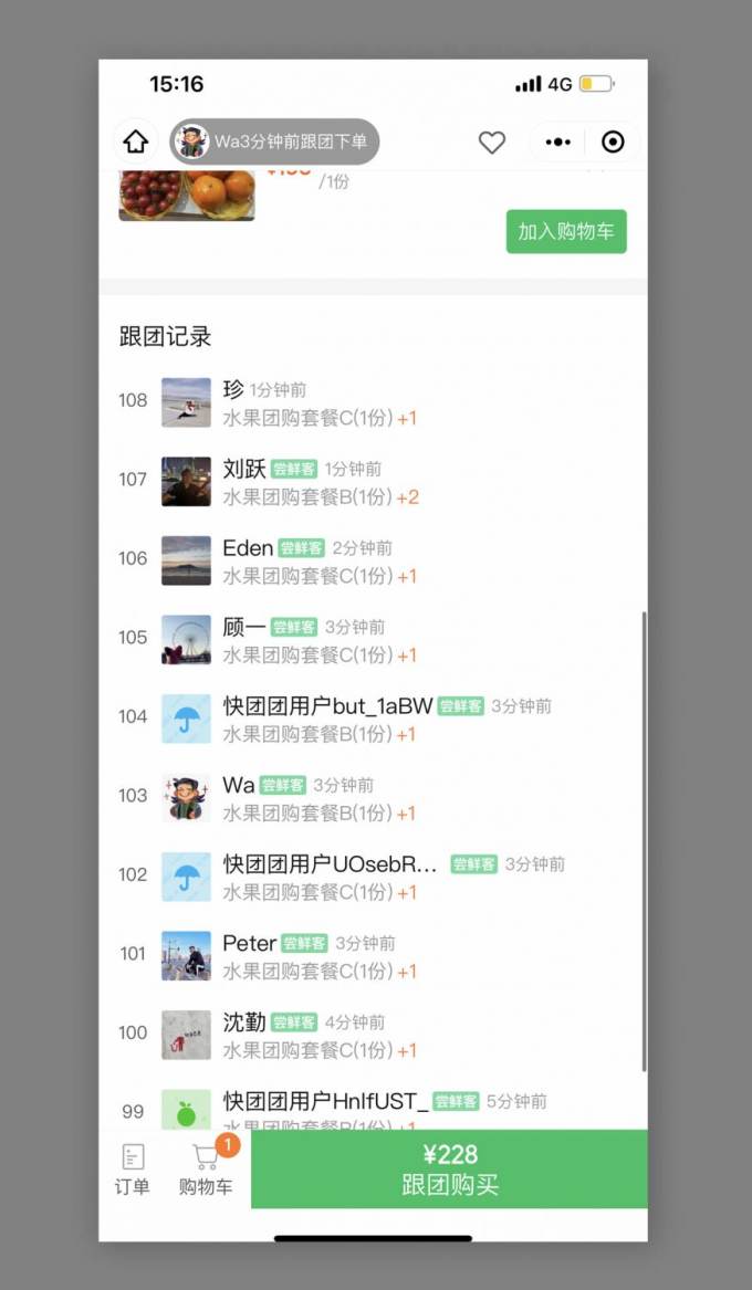 Scroll down to see a list of all those that have already joined the group buy.