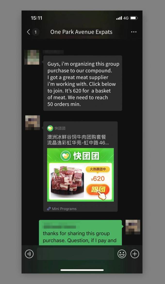 You want to be careful with random group purchases that you find outside your building / compound's WeChat group. The whole point of a group purchase right now is to have one large delivery to the same compound, so a group purchase spread over many compounds doesn't make much sense right now and is most likely a scam. More on that below.