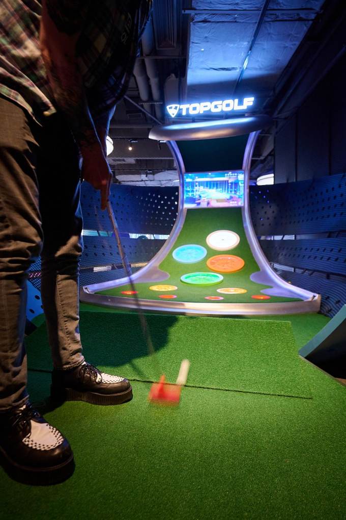 Part sports bar, part cocktail lounge, part restaurant, part mini golf range, part space-age, Tiger Woods-approved golf course VIP simulator rooms, part private event space, part arcade — more than the sum of its parts.