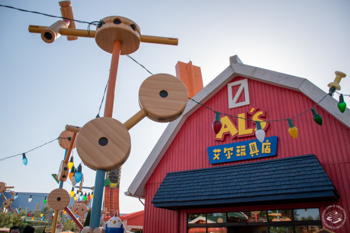 Apart from this, Shanghai Disneyland is not interested in carbon copying the formula from other parks. Your first real taste of Shanghai Disneyland is Mickey Avenue. This is Shanghai's version of Main Street U.S.A. Unlike the folksy American small-town aesthetic of other parks, the shortened Mickey Avenue is lined on both sides by squat, cartoonish buildings. There are no rides here, unless you count the carousel at the end of the Avenue, just restaurants like Mickey & Pals Market Cafe, and the much-gossiped about Club 33. That, and shooooops.