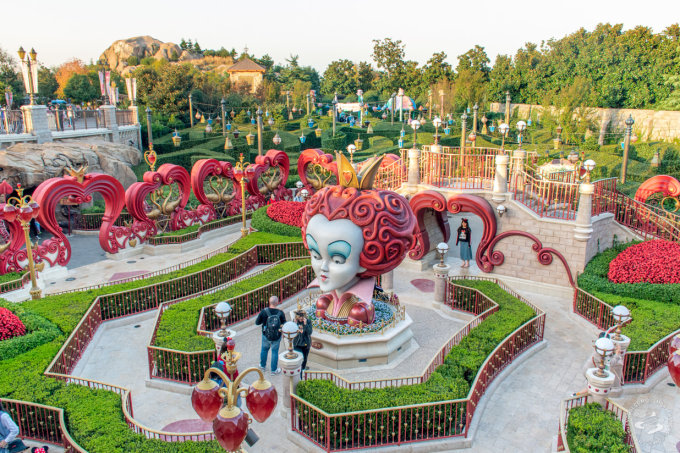 Alice's Maze isn't much of a maze, despite the three doors you choose from at the start. It's more of a fun walk around in a garden with little set pieces and dioramas from Lewis Carrol's wigged-out fever dream scattered about. Queen of Hearts and the Mad Hatters, naturally. Don't feel the blue caterpillar was given a prominent enough appearance though. And no Johnny Depp here. Excellent spot for photoshoots, and there are plenty of visitors taking advantage of that.