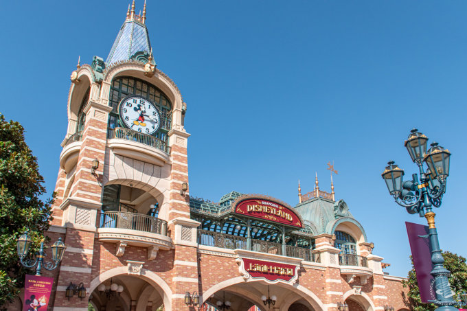 The general crowds enter the park proper under the clocktower of the train station. Unlike the train station at other Disneylands, this one's just for show. It's there because all the other Disneylands have one.