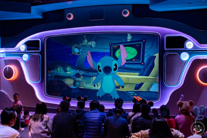 The Stitch Encounter is a character meet-up, or more like an intergalactic Skype videocall with the furry blue alien as he's out there, cruising around space. It is the best thing in Tomorrowland, and I'm including the Light Cycles. Stitch, voiced in real-time by an actor in a control room somewhere, banters with members of the audience (in Mandarin), complete with custom animations of Stitch reacting to what's going on. His reaction to a young audience member accidentally speaking the nuclear launch codes is a masterclass in comedic timing.