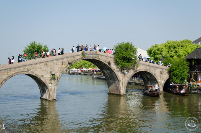 Cross All The Bridges in Zhujiajiao - Zhujiajiao has something like 36 bridges. Unless you go looking, you'll encounter maybe eight. They vary from little two-meter stone-and-wood constructions to Fangsheng Bridge, the majestic five-arch, six meter tall, seventy meter long construction dating back to the 1800s. It's packed, but since it's the only way across the river (apart from the 80rmb tourist gondola ride) you'll have to brave it eventually. See Rule #2.