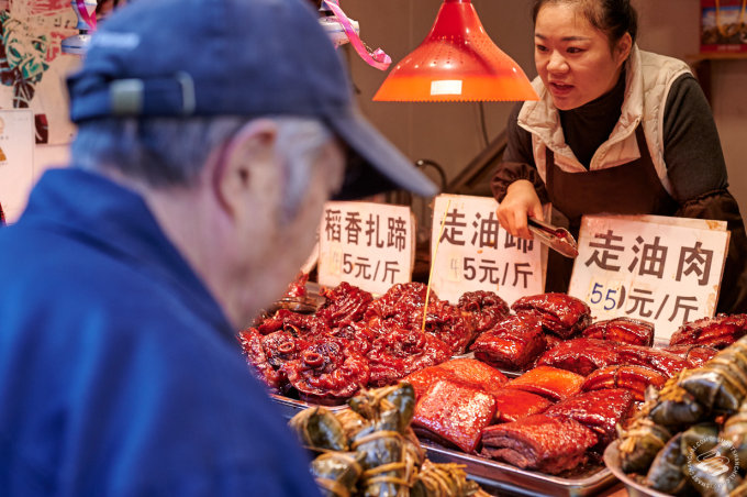 Quote Wikipedia, "Zhujiajiao is famous for its cuisine." In reality, it's watertown food. You'll find something very similar just about anywhere around Shanghai. Especially on the northern streets, the lane is flanked by stalls selling steaming hunks of reddish-brown braised pork. There are plenty of places to get skewers or tofu.