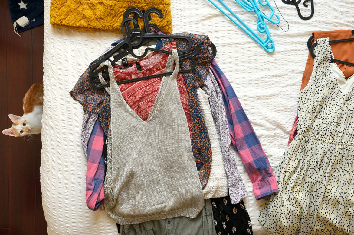 Kanako arrives at my door exactly on time; she's a petite, cheery Japanese woman, wearing a simple A-Line dress inspired by her fashion idol: Audrey Hepburn. Kanako tailors appointments according to her clients' needs, offering a one day 2-hour session (400rmb), a two day 4-hour session (600rmb), and 8-hour whole house cleaning (1,000rmb). Before we get to my things, she asks we sit on the couch to discuss the process and set intention. I have the classic problem of too many clothes, nothing to wear—also after hearing Oprah Herself say decluttering her closet increased her "happiness points" I was curious. We decided the big undertaking for our session would be my closet (though we also got to my shelves).