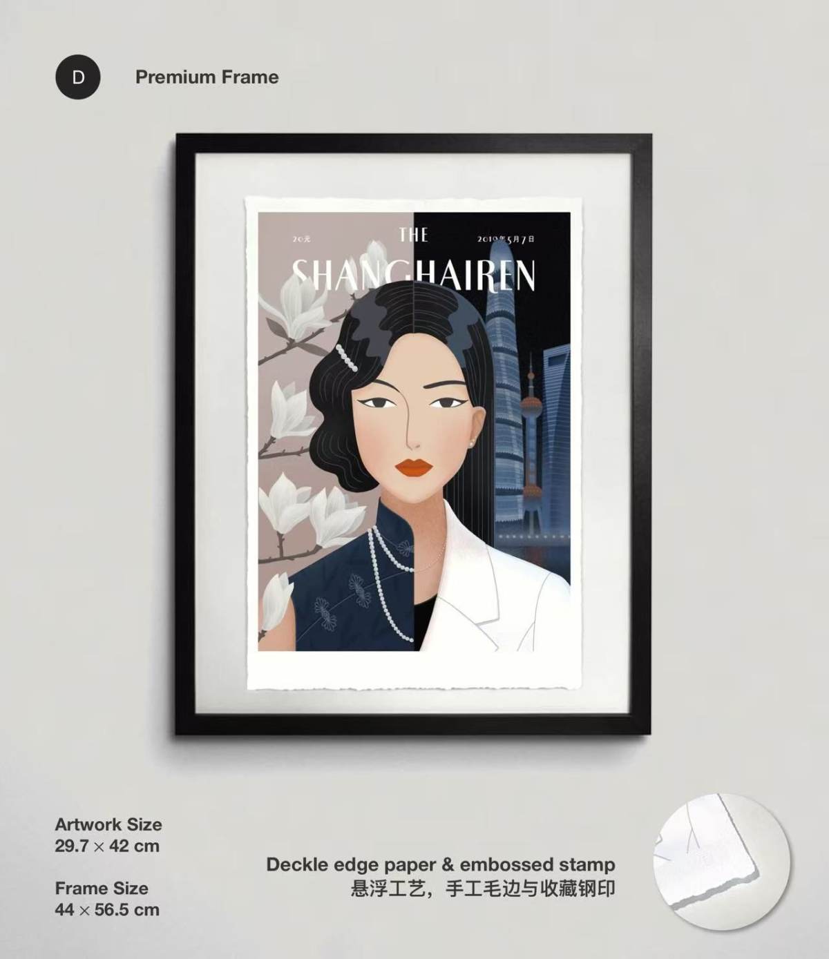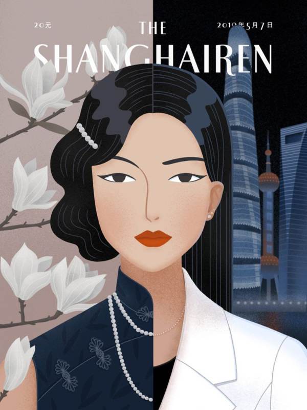 In my perception, Shanghai embodies both traditional and modern Chinese elements. I've employed the attire of a Chinese woman and diverse background settings to portray the dual nature of old and new Shanghai. The woman on the left is dressed in the fashion of a typical Shanghai woman during the Republic of China era (1912-1949). The magnolia flower in the backdrop holds a special place in Chinese culture. On the right, a woman dons a white suit, exuding simplicity and competence, representing the modern urban woman. The three prominent buildings in the background are iconic nighttime architectural marvels of Shanghai, including the Shanghai Tower, Oriental Pearl Tower, and Shanghai World Financial Center.