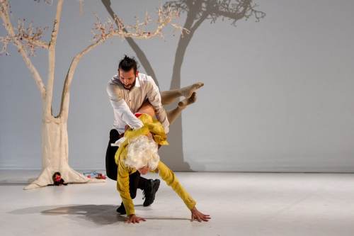 It’s a dance of cat and mouse, a dance exploring antagonistic forces. Here, bodies flirt with irony - a desire for joy, a desire for melancholy. Shihya Peng and Marco Di Nardo’s bodies transform into two distorted mirrors – uncovering more about ourselves than we thought we knew. They carry each other, fly, fall, exasperate each other, then get up and walk together. With humor, this show speaks to the young and to the less young.