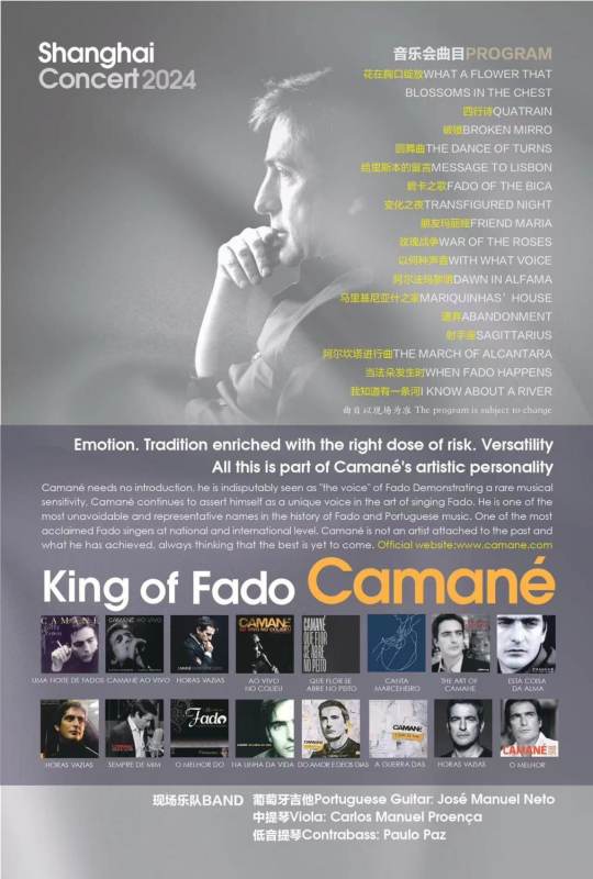 Camané, the King of Fado, is performing at the Shanghai Oriental Arts Center this June. He is widely recognized as a prominent figure in Portuguese fado music. Since winning the "Lisbon Fado Night" competition at the age of 13, he has released several original albums, receiving high praise and recognition from critics and the public alike, topping sales charts multiple times. He has held numerous concerts and tours in Portugal and abroad, earning nominations and awards from various music competitions, including the "Amália Rodrigues" Best Fado Performer Award and the Play - Portuguese Annual Music Awards, establishing himself as one of the most acclaimed fado singers in Portugal and internationally, warmly embraced by audiences worldwide. Camané has collaborated on numerous works with renowned Portuguese musician, producer, and composer José Mário Branco, earning several honors. In 2021, he released his latest original album "Horas Vazias" and won the Best Fado Album award at the Play - Portuguese Annual Music Awards.