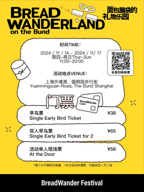 The Bread Wander Festival is back in Shanghai, this time at the Rockbund, featuring retro architecture along the Suzhou River. Over four days, attendees can explore a market with more than 60 popular brands, as well as various themed workshops and discussions with brand founders. Tickets include a Bread Wander Card charm and redemption options at select brands. Children under 12 can enter for free (ID required).