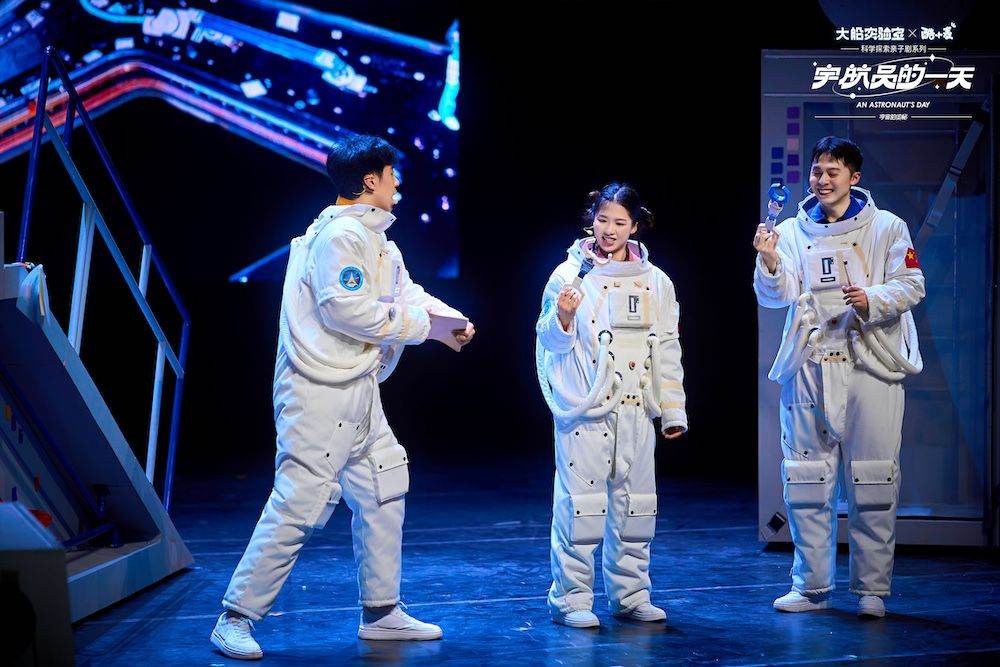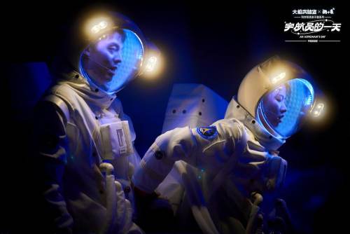 From the moment you step into the theater, you’re in space. Towering solar wings stretch across the stage, a robotic arm glides above the audience, and the entire venue transforms into a space station. More than just a show—it’s an interactive journey through the cosmos.