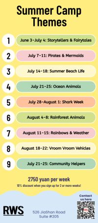 Join Read Write Shanghai’s 2025 Summer Camp from June 30 to August 29 for an enriching experience filled with fun and learning! Designed for children ages 4-12, this small-group program offers a variety of activities such as storytelling, phonics, reading, writing, arts, crafts, drama, science, and more. With native English-speaking staff, half-day sessions (8:30am - 12pm), and a maximum of 8 children per activity, it's a perfect environment for fostering English growth. Choose the weeks that suit you, with a 10% discount for enrolling in 2 or more weeks. Applications close on June 18. Limited spots available!