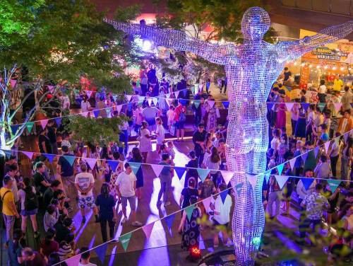 With programming spread across multiple days and evening hours, it functions as a social event where attendees can choose to watch performances, try food, or join the dance floor.
