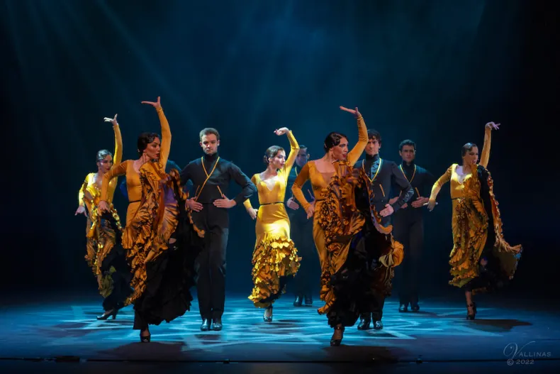 Traditional elements play a key role in the visual identity of the show. Costumes and accessories such as the Cordobés hat, Manila shawl, Spanish cape, and the iconic bata de cola are integrated into the choreography, alongside castanets performed live by the dancers. The result is a performance that emphasizes both technical precision and theatricality.