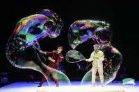 Welcome to the fascinating world of soap bubbles. The show takes the audience inside a laboratory where the performers, acting as alchemists, conduct a series of imaginative experiments. Using just four simple elements—soap, water, music, and light—they create visual wonders like glowing clouds, giant bubble planets, and musical notes made of bubbles.
