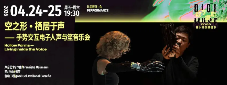 Hollow Forms – Living Inside the Voice is a cross-disciplinary work blending vocal experimentation, electronic music, and traditional Chinese instrumentation. The performance invites audiences into a constantly evolving soundscape where sound is not only heard but physically experienced.