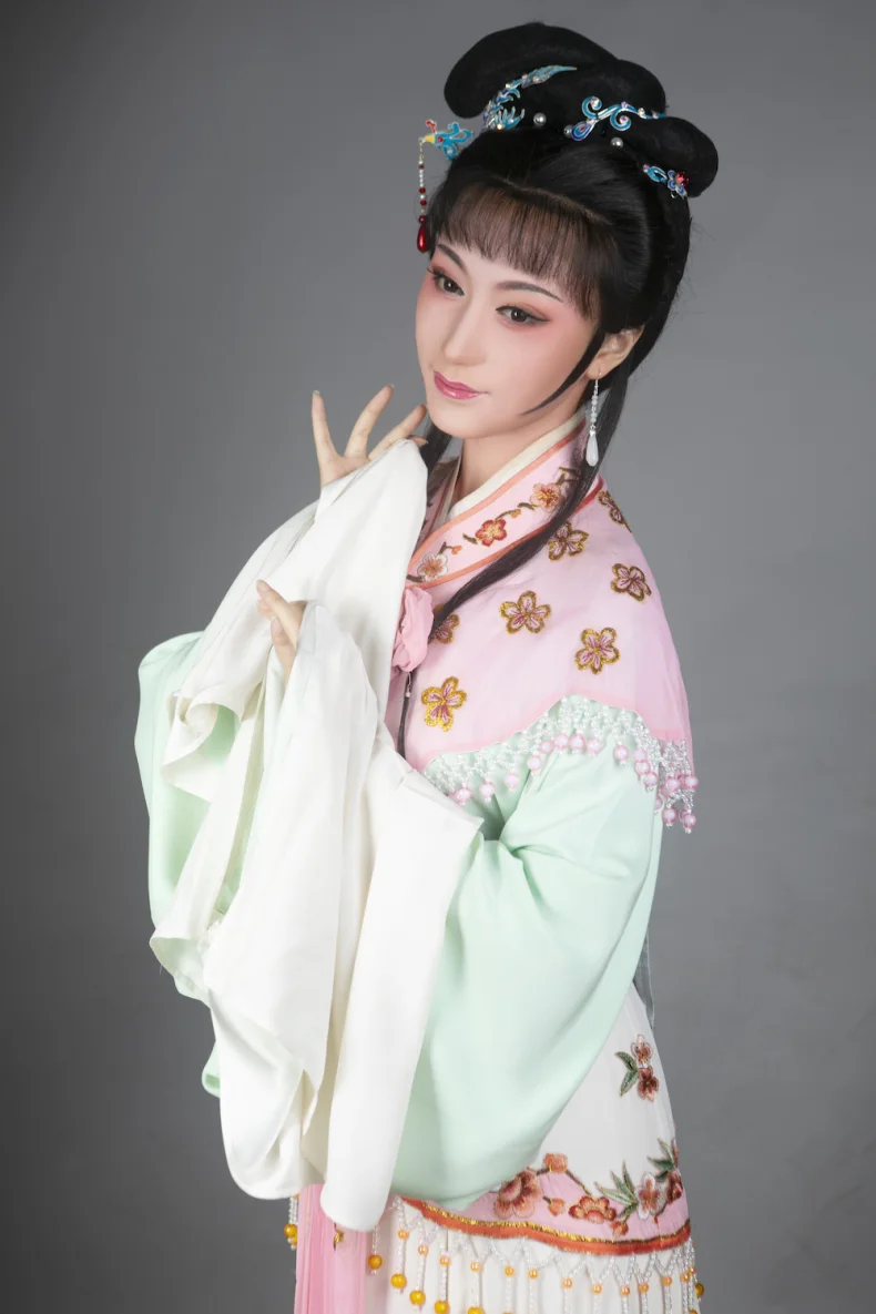 Repertoire includes A Dream of Red Mansions, Chasing Fish, Romance of the Western Chamber, Stage Sisters, and other traditional and original works. Awards include the 32nd Shanghai Magnolia Newcomer Actor Award, 14th China Children’s Xiao Mei Flower Gold Award, and the 2019 “Golden Art Award” at the National Yue Opera Youth Performance Festival.