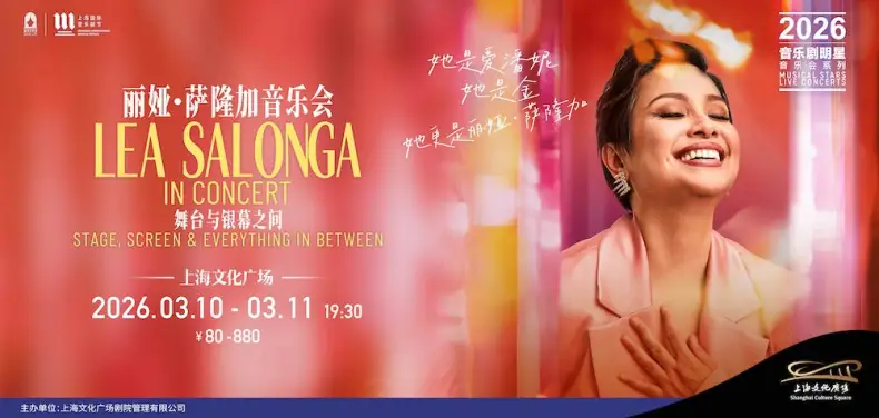 “Lea Salonga: Stage, Screen & Everything In Between” brings the internationally acclaimed musical theatre star to Shanghai Culture Square for two nights, March 10–11, 2026. Salonga is the first Asian woman to win a Tony Award, and her legendary performances as Kim in Miss Saigon and Fantine/Eponine in Les Misérables have cemented her status as a global musical icon.