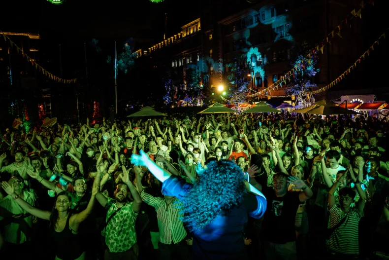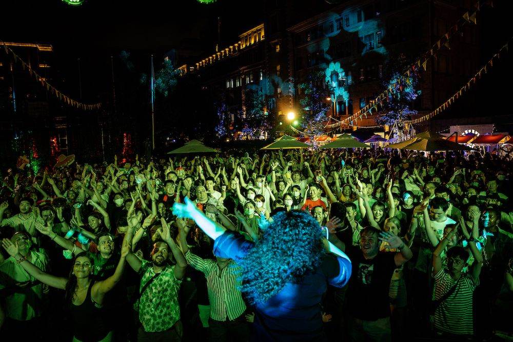 As the day transitions into evening, the focus shifts toward music and live performances. More than 20 DJs and artists perform across the festival period, moving from relaxed daytime selections to more energetic sets later in the evening.