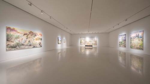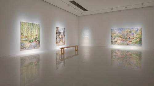 Shanghai Powerlong Museum is hosting a solo survey of Michelle Blade’s work, exploring rivers as both physical and conceptual forces. Blade’s paintings layer translucent acrylics and ink on stretched linen, producing dreamlike landscapes where abstract details emerge from the flow of pigment. Her approach emphasizes movement, memory, and transformation, with a style that blends Romanticism, Magical Realism, and personal mythology. The show presents a series of works that consider rivers not just as watercourses but as living archives, capturing gestures, stones, and currents in their continual reshaping.