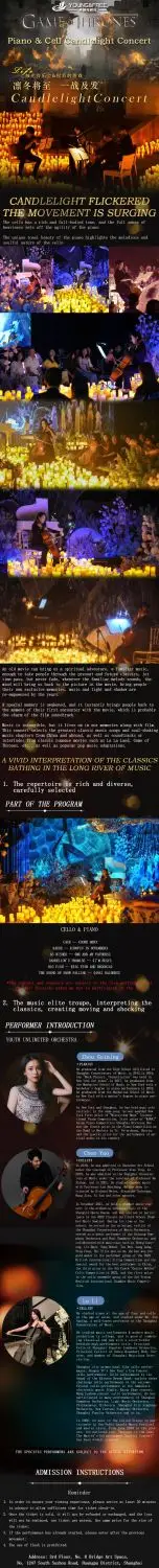 Enjoy a unique Candlelight Concert featuring Big Fish, As Wished, and Half-Moon Serenade, performed by the Youth Infinity Orchestra in a century-old historic building. The soulful cello and expressive piano bring a fresh take on these beloved pieces, blending melody and storytelling into a captivating performance.