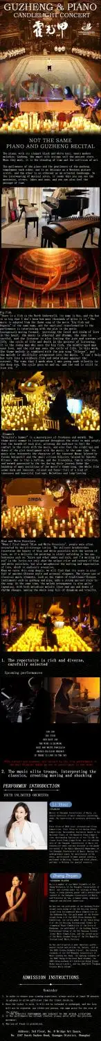 Experience the harmonious blend of piano and guzheng in this extraordinary concert where Western classical and Eastern traditional music meet. The elegant resonance of the piano intertwines with the guzheng’s delicate strings to create a soundscape that’s both timeless and transcendent. The program bridges classic film scores, traditional melodies, and modern hits, delivering an evening of rich musical storytelling.