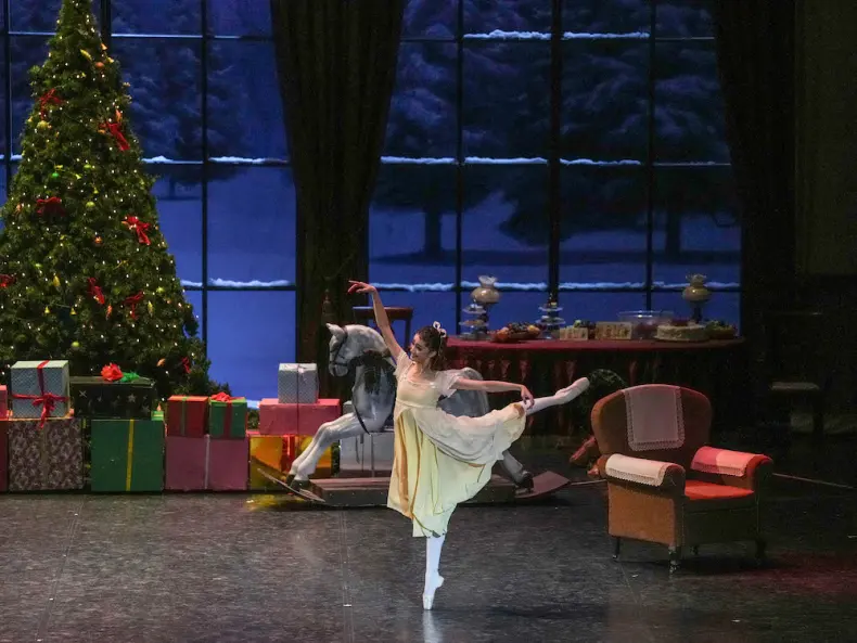 It’s Christmas Eve at the Stahlbaum household, where young Clara receives a magical Nutcracker doll from her eccentric uncle Drosselmeyer. When the clock strikes midnight, the doll comes to life, a battle with the Mouse King ensues, and Clara’s living room transforms into a glittering winter world.