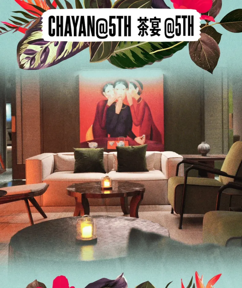 Attendees can explore three distinct environments: the “PAVILION” courtyard garden, the “SECRET ROOF” rooftop bar, and the hidden speakeasy “CHAYAN @ 5TH”. The event is structured as a three-stage takeover featuring DJs and a live band performance throughout the day and evening.