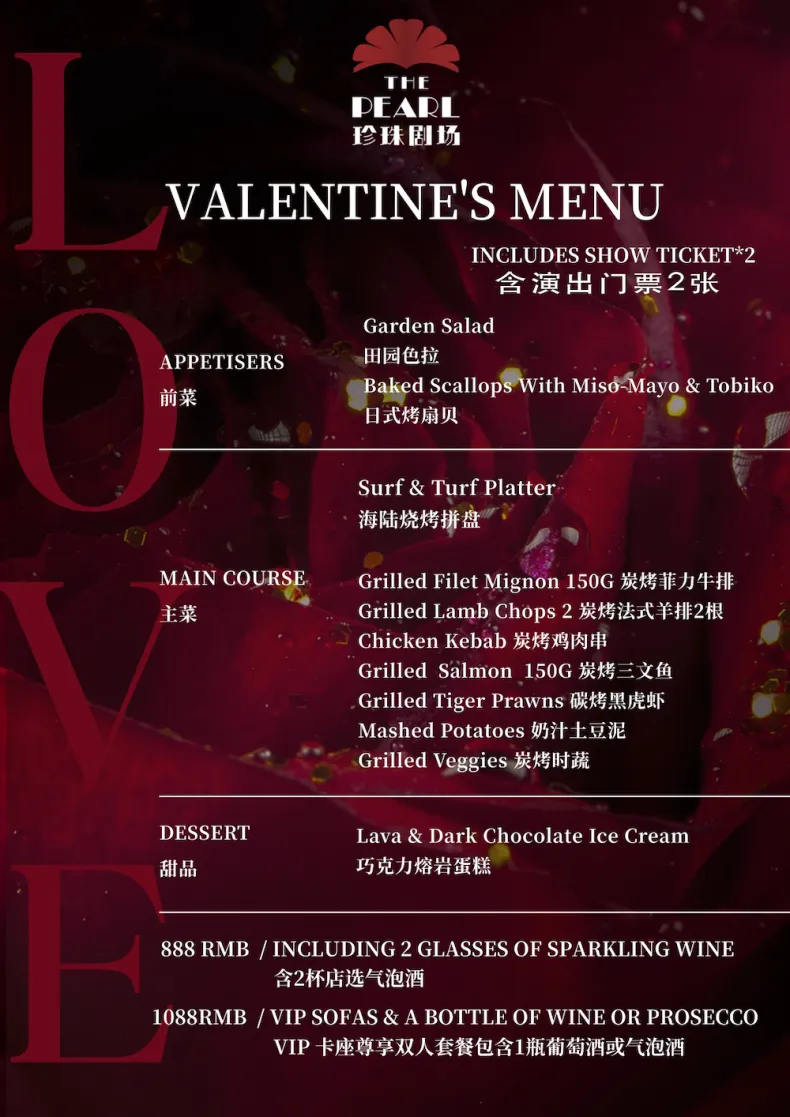 Valentine’s Dinner & Show at The Pearl is a one-night-only romantic evening combining live music, aerial performance, and dance in an intimate cabaret setting. The experience includes a seated dinner, prosecco, and a one-hour live show featuring The Red Stars alongside aerial and dance performances.