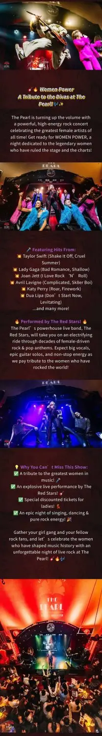 Get ready for a rockin’ good time with Women Power, an electrifying tribute concert celebrating iconic women in music, as The Red Stars Band tears through anthems from Taylor Swift, Lady Gaga, Avril Lavigne, Katy Perry, Dua Lipa, and more—expect powerhouse vocals, high-energy performances, and all the hits you know and love.