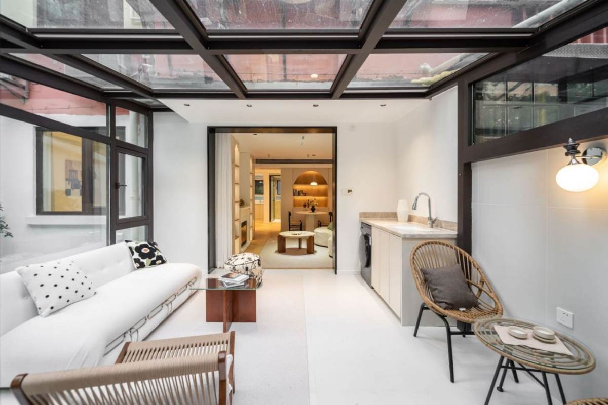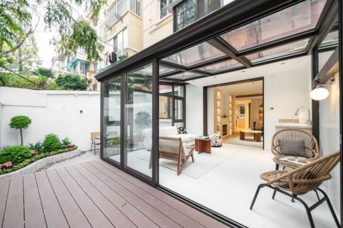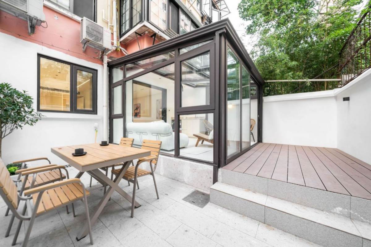 This apt is on Fuxing Rd and Fenyang Rd. Ten minutes walking distance to S. Shaanxi Rd Station and Changshu Rd Station. It's on ground with exclusive entrance. It has 2 bedrooms and 1 bathroom. Building size is 90sqm. Features: 20sqm Yard/Sun room. Floor heating. Dish-washer, oven, dryer, etc. Fully furnished. Available now. Please scan QR code for visiting and more details. Thank you!