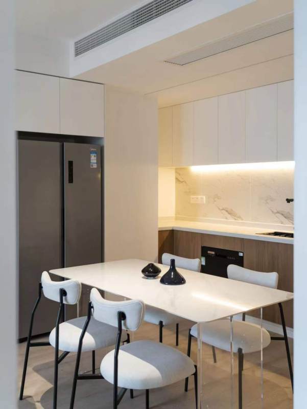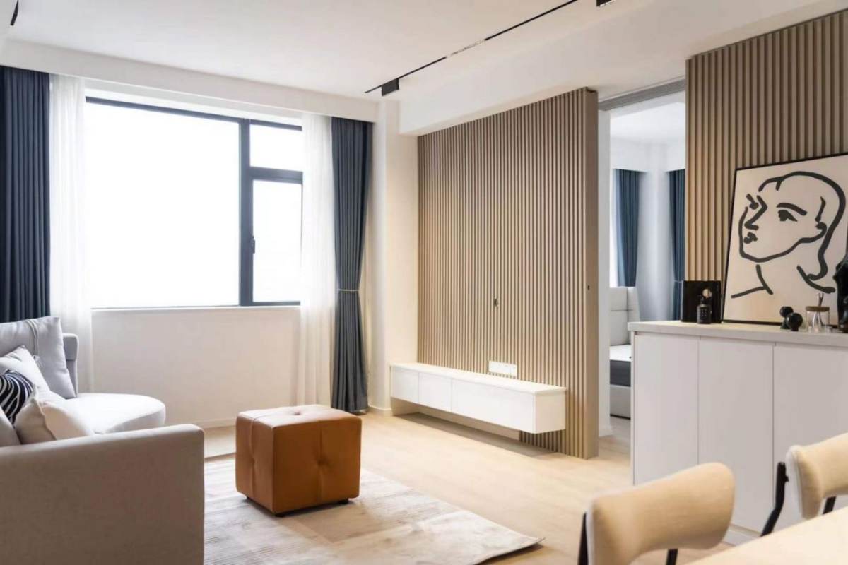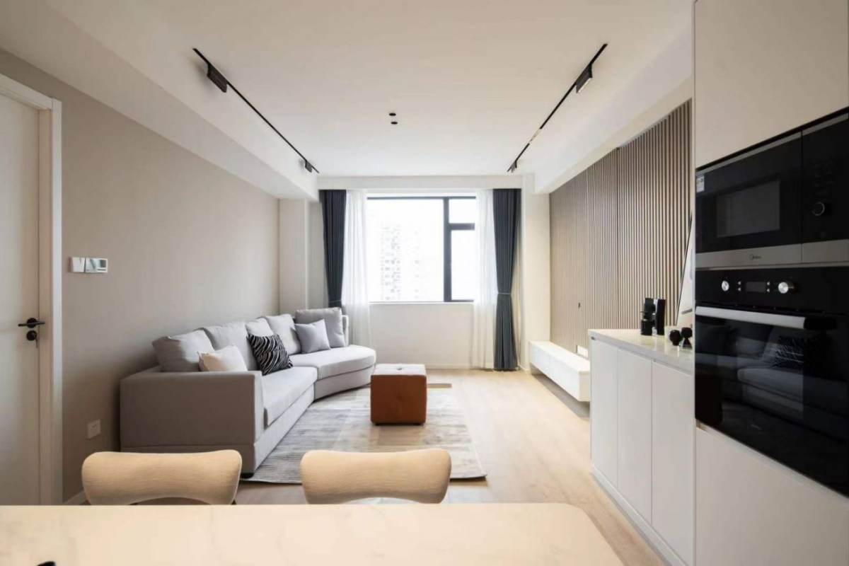 Nestled in a high-floor Wuxing Road elevator apartment, this modern 2-bedroom 1-bathroom residence offers good natural light alongside floor heating and central air AC throughout. The open kitchen is equipped with an oven, dishwasher, and double-door fridge, while both spacious bedrooms accommodate double beds. The bathroom features a bathtub and smart toilet, complementing the thoughtful layout. Enjoy prime accessibility with Zhaojiabang Road Metro Station just five minutes away and Xujiahui within walking distance, while the adjacent Xujiahui Park provides green respite.
