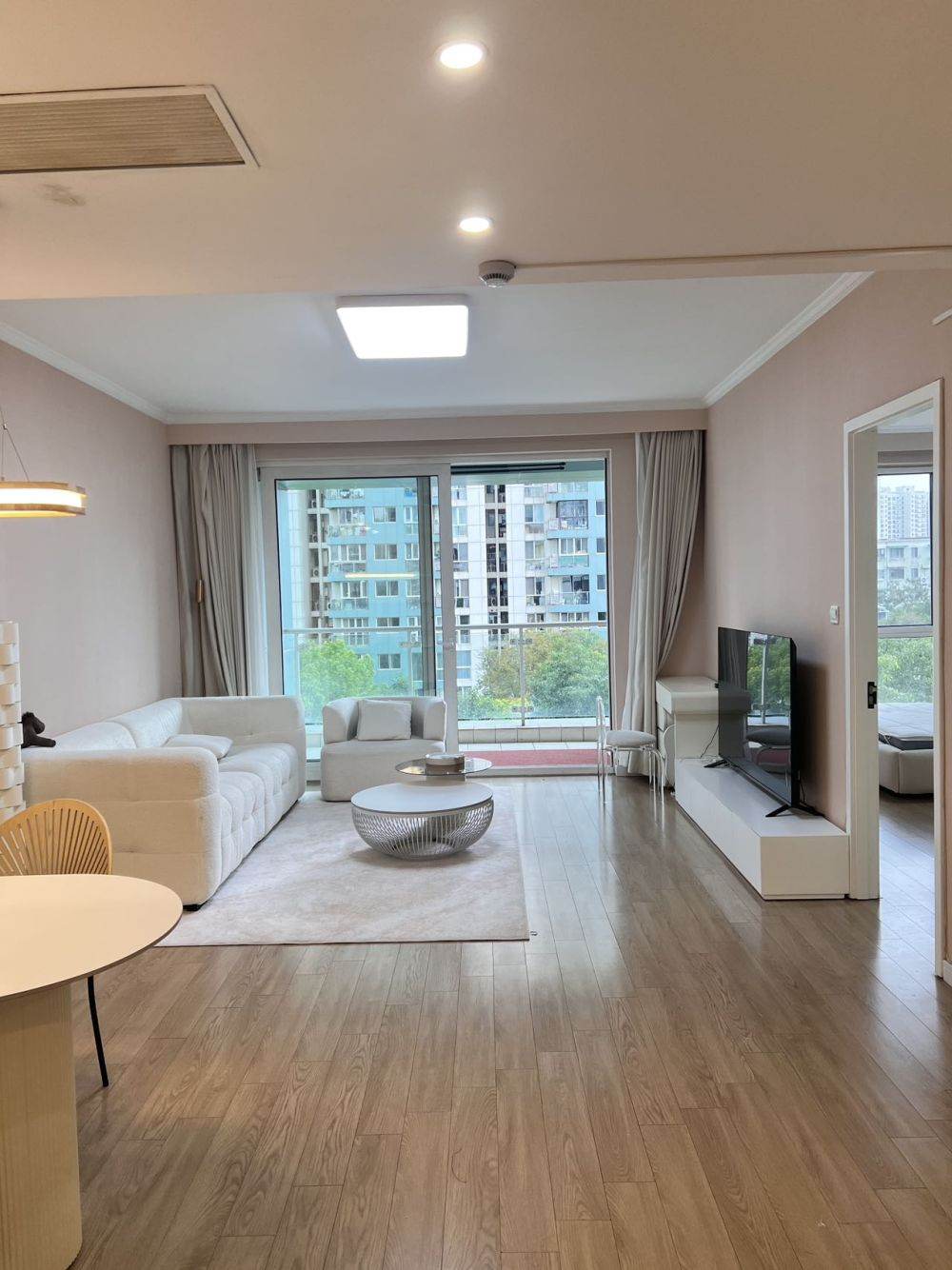 Hi,this is a high end compound big 1Br apt near line 9 and Xintiandi area! It has very nice renovations,central ac,nice furniture,bathroom with tub. Big windows,facing south,very bright. 5F with lift,available now.