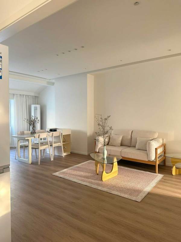 This spacious 100 sqm 2-bedroom, 1-bathroom townhouse on Yuyuan Road occupies the entire third floor, ensuring good privacy. The efficient layout features an expansive, bright living-dining area with excellent south-north exposure and abundant natural light. It includes a private, spacious terrace for exclusive use. Tastefully furnished in a minimalist style, the home offers a warm and modern ambiance. Conveniently located just a 3-minute walk from Jiangsu Road Metro Station.