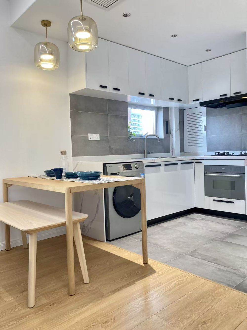 Lane 358, Jiaozhou Road, Jing'an District, 1 room, 2 living areas, 1 bathroom, 65 square meters, rent 13500 yuan. Fully equipped with underfloor heating, central air conditioning, integrated micro-steam oven, smart toilet, large floor-to-ceiling balcony, password-protected door lock. The tenant's lease ends on December 12th; viewing arrangements can be make