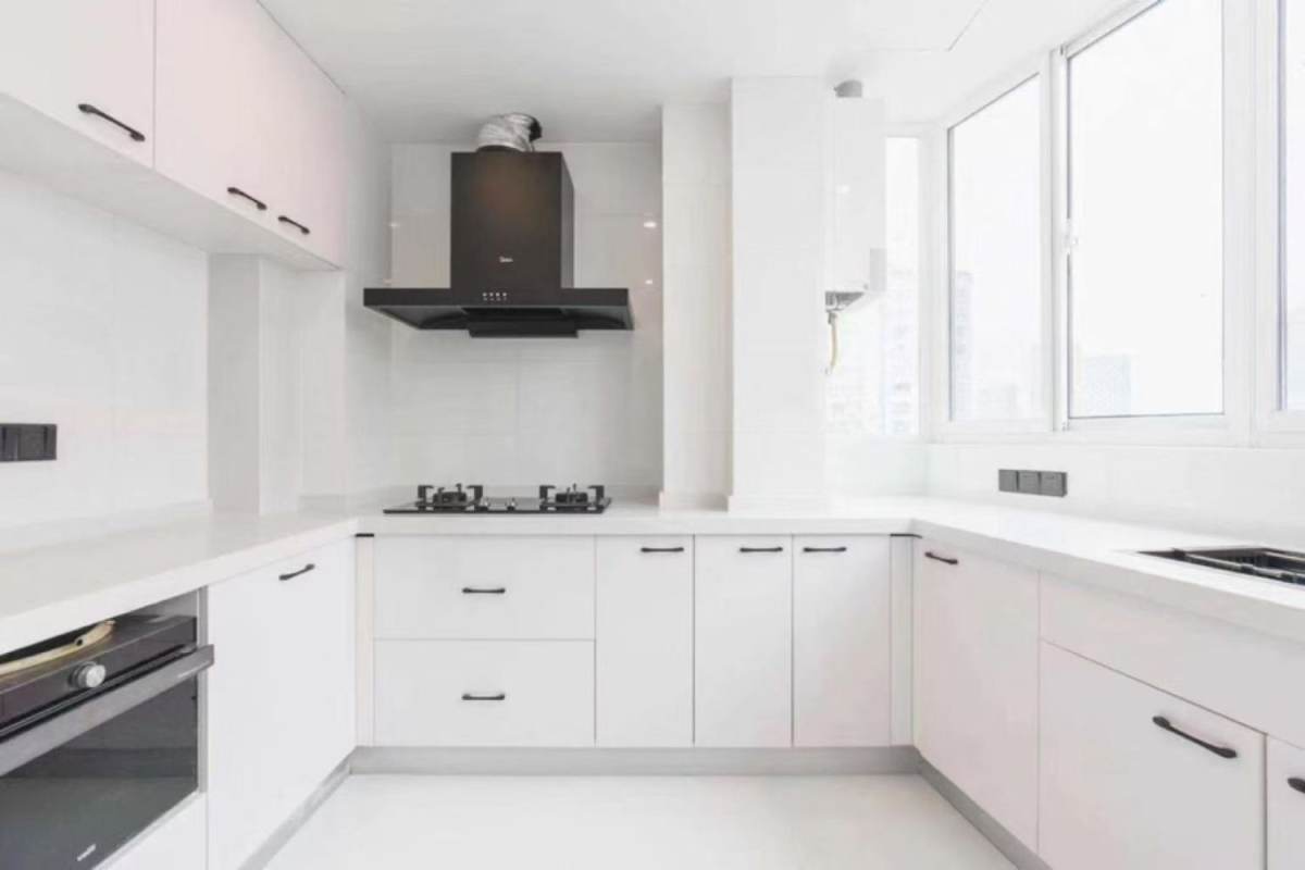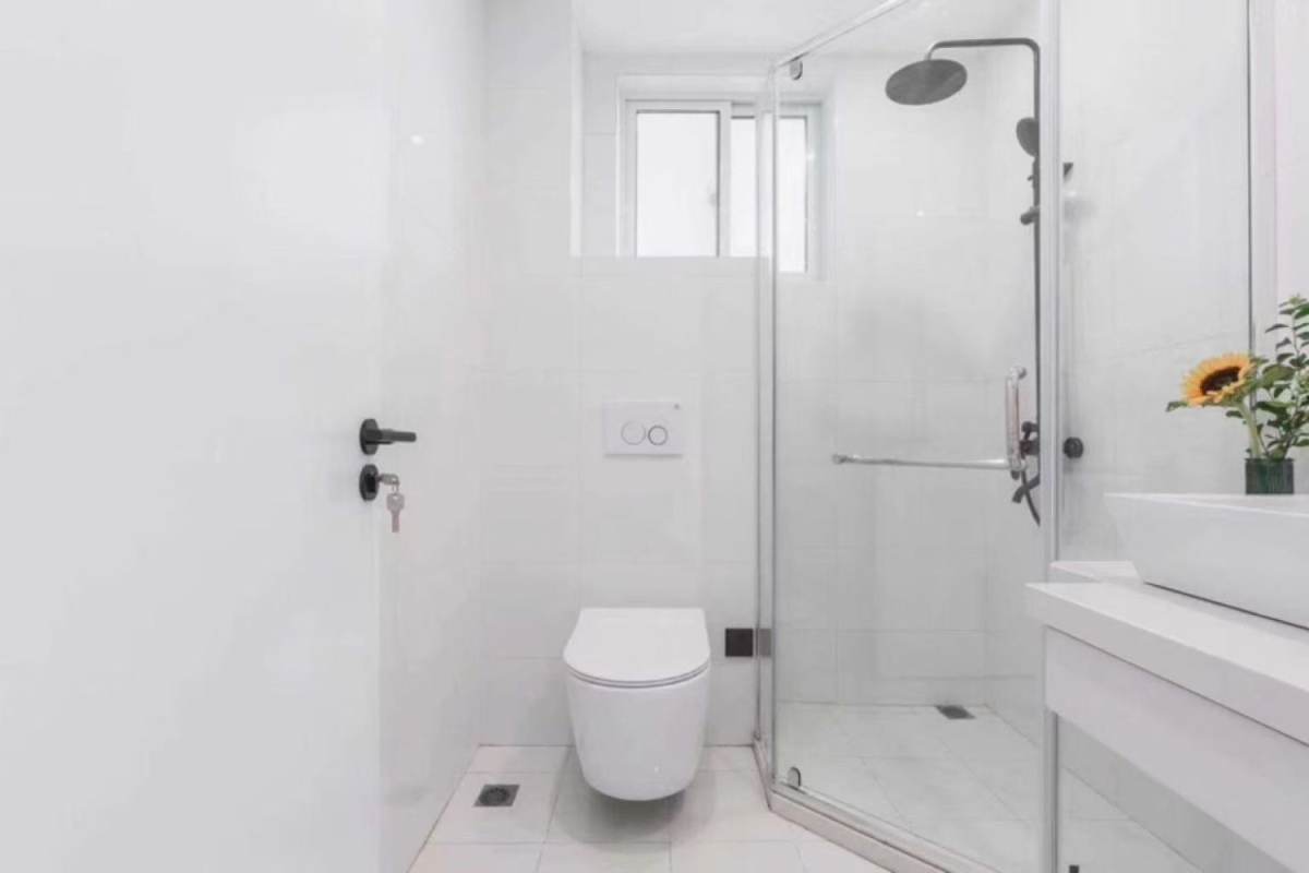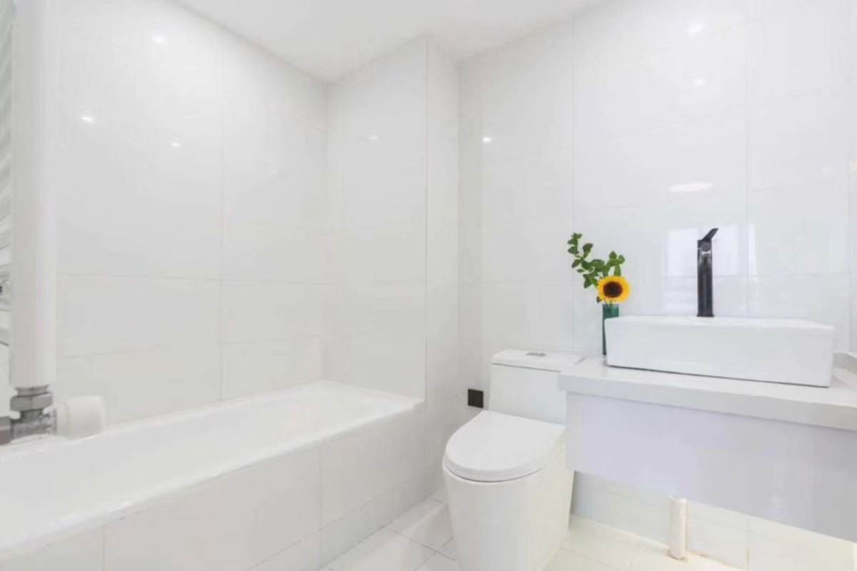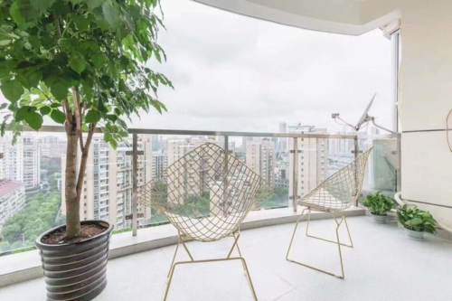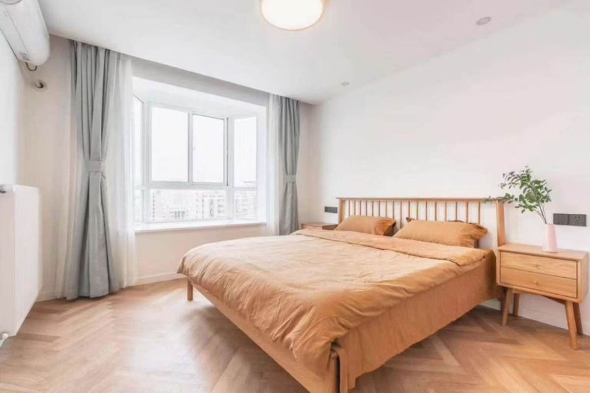 Sunlit high-floor 2-bedroom 2-bathroom residence on Fahuazhen Road, enjoying excellent natural light, ventilation, and open views. The apartment features wall heating and a spacious living area connected to an expansive outdoor balcony. Both generously sized bedrooms include double beds, while the well-equipped kitchen contains an oven. The master bathroom features a bathtub, and the guest bathroom has a shower. Just a 6-minute walk to Yan'an West Road Metro Station.