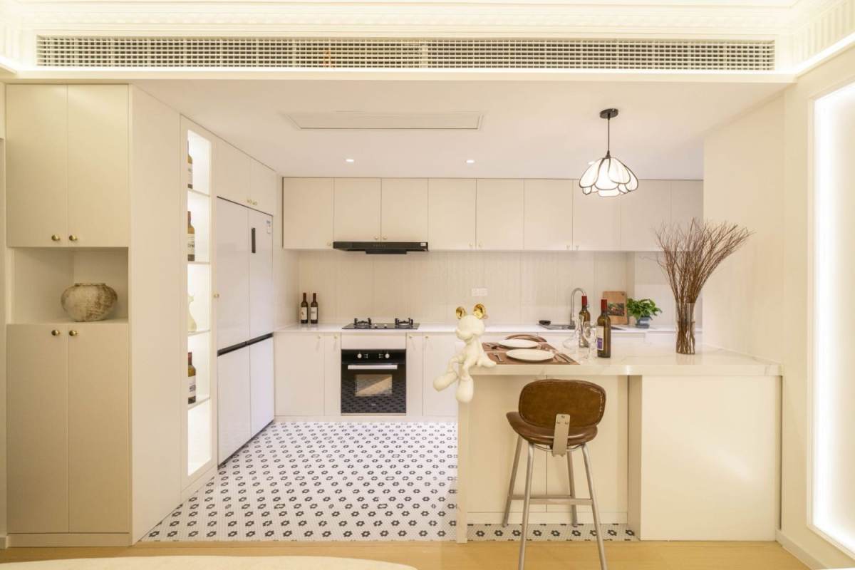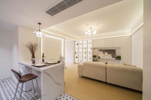 Xujiahui Garden is a green and quiet compound in central Xujiahui area ,you have a big Xujiahui park in 400 meters away ,City Shop and Tianyaoqiao restaurants street and metro line 1,9,11 Xujiahui shopping mall all in 10 mins walk ,very central and convenient .This is a very big size 1 bedroom with spacious and square living room that with nice open kitchen with oven ,dish washer two door Fridge and nice bar ,1bedroom is big size with modern furniture and wardrobe ,whole apartment with floor heating and central aircon ,you have both shower ,very bright and good quality 1 bedrooms with storage for single and couple clients