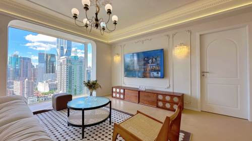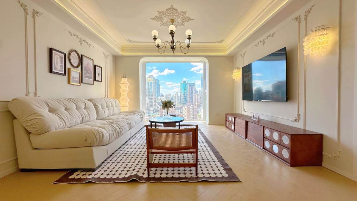This apartment is in Huangpu district. You only need 5 minutes walk to South Huangpi Rd subway station . There are many shopping malls ......bars ,shops ,banks ....... This apartment has 3 bedrooms 2 bathrooms,central AC , floor heating ,oven ,dishwasher ,very homey and clean .If you like it ,you can contact me at any time .