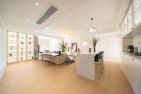 Open kitchen with island dining—perfect for weekend gatherings with a French salon vibe!