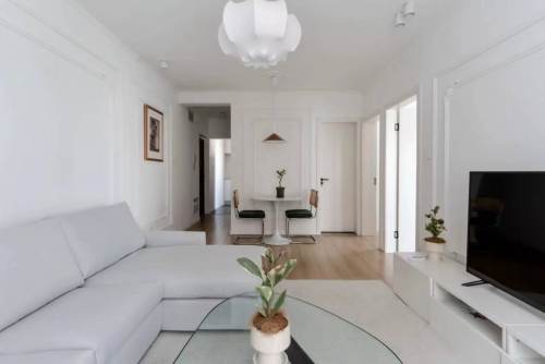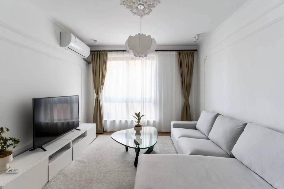 This elegant French-inspired 2-bedroom residence in a high-rise elevator building on Jiaozhou Road features floor-to-ceiling windows and is appointed with refined furniture and quality appliances, including a kitchen with oven and dishwasher. A highlight is the expansive enclosed balcony. It is within walking distance to both Jing'an Temple and Wuding Road Metro stations, and steps from the vibrant sought-after Wuding Road.