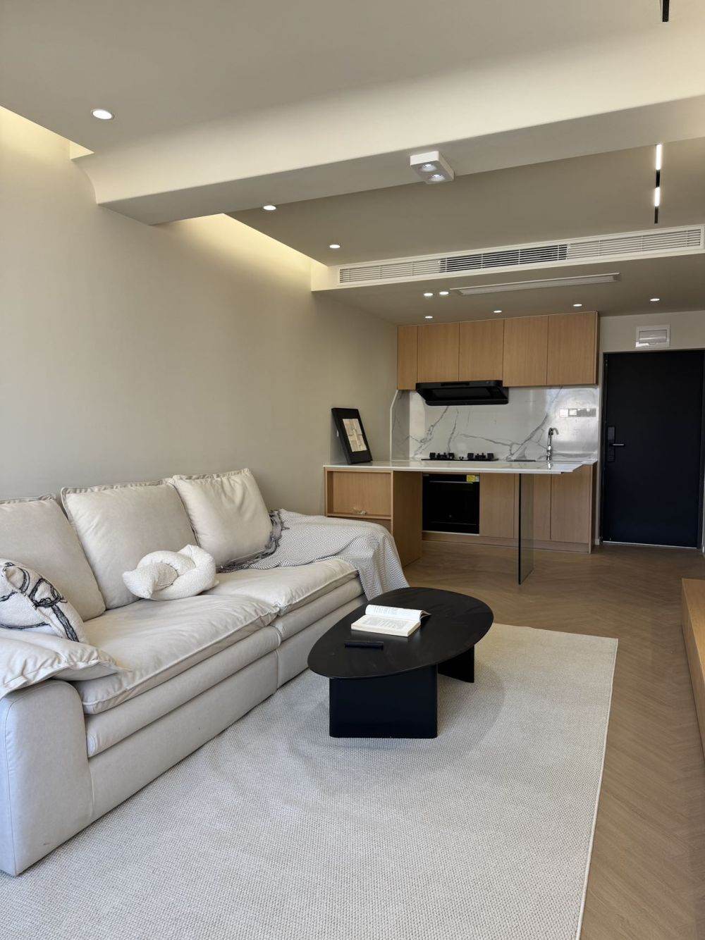 It is equipped with a well-designed living room and separated 1bedrooms .