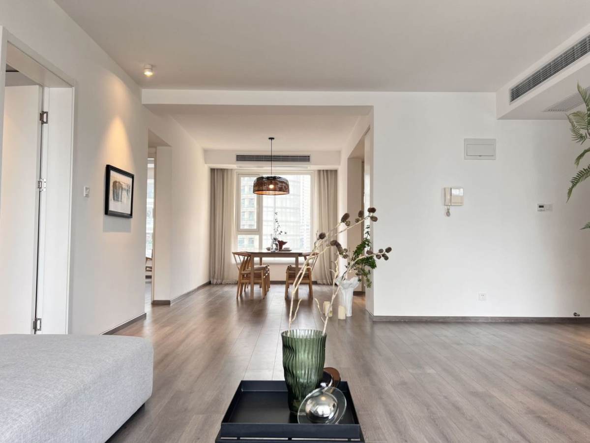 Top of city is one of the most popular compounds in central downtown ,perfect location ,walking distance to west nan Jing road CBD ,Xintiandi and People Square .You have top level shopping mall Taikoo Hui and big Sculpture park beside .Very beautiful compound with many trees and a nice lake .This is a big size 3 bedrooms with 2 bathrooms ,big and bright living room with open balcony and nice view ,whole apartment is with floor heating and central aircon ,all the furniture is simple and modern style that expatriates like ,western kitchen with oven ,dish washer and 2 door Fridge ,very warm and comfortable apartment in perfect location
