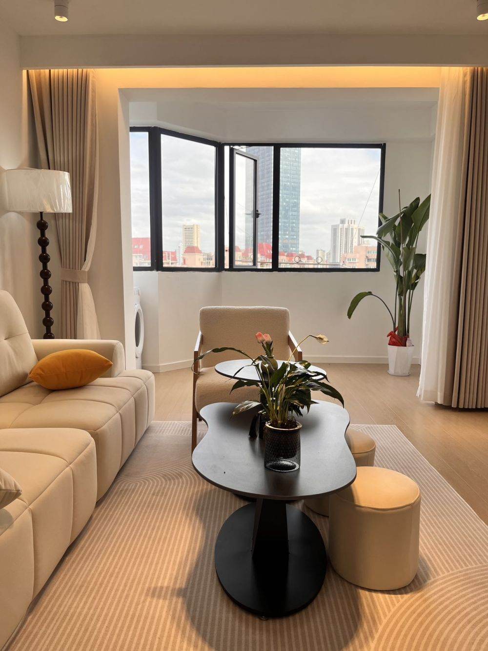 this is new decoration one year apt ,one bedroom and two living rooms ,landlord bought all nice furniture ,TV,24 hours convenient shop, Starbucks shop, Laundry shops, banks nearby, it is very clean compound.