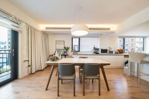Xin he garden is a green and good location compound belong to Green city area ,walking distance to metro line 9,14 and famous Dulwich and Concordia international school ,you have many nice restaurants on Hong feng road and Bi yun road .This is a nice modern big size 3 bedrooms with very big living room ,living room and bedrooms all with floor heating and central aircon ,huge open kitchen with oven ,dish washer double door Fridge and water filter and big bar ,all the rooms are equipped with modern and simple furniture ,very beautiful 3 bedrooms for family clients