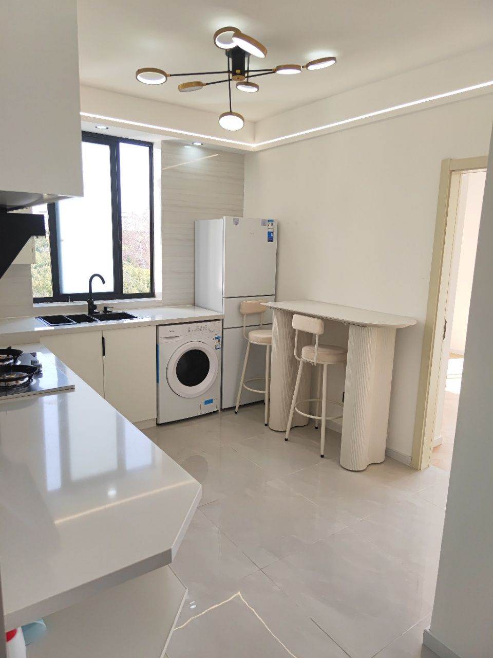 this is new decoration one year apt ,one bedroom and two living rooms ,landlord bought all nice furniture ,TV,24 hours convenient shop, Starbucks shop, Laundry shops, banks nearby, it is very clean compound.