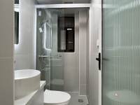 Nice, clean modern style furniture, mostly white and very bright.