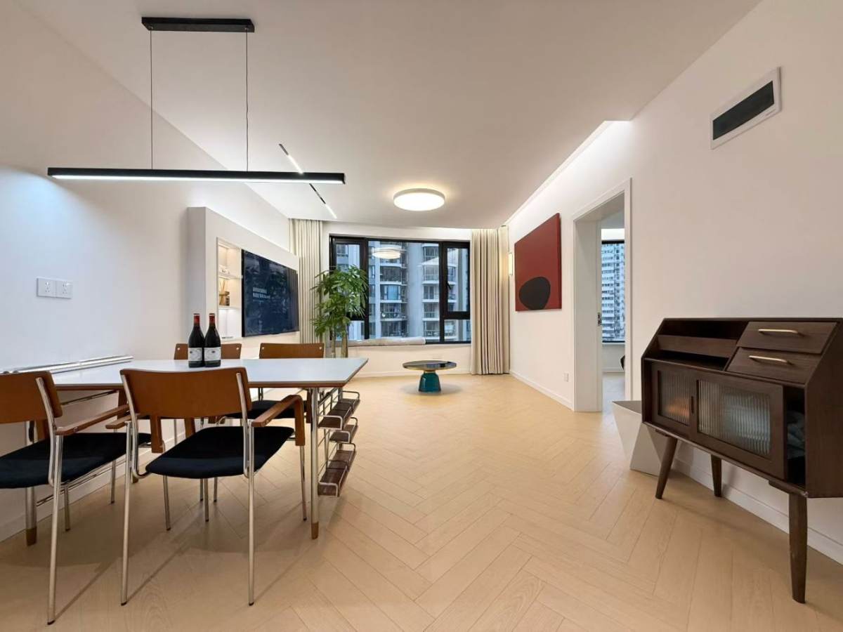 3 bedrooms, 2 bathrooms, 15th floor with open balcony, central ac, floor heating, oven, dish washer and dryer, 140 sqm, it has gym and swimming pool inside compound, walking distance to wuning metro, the price is 18K~~~