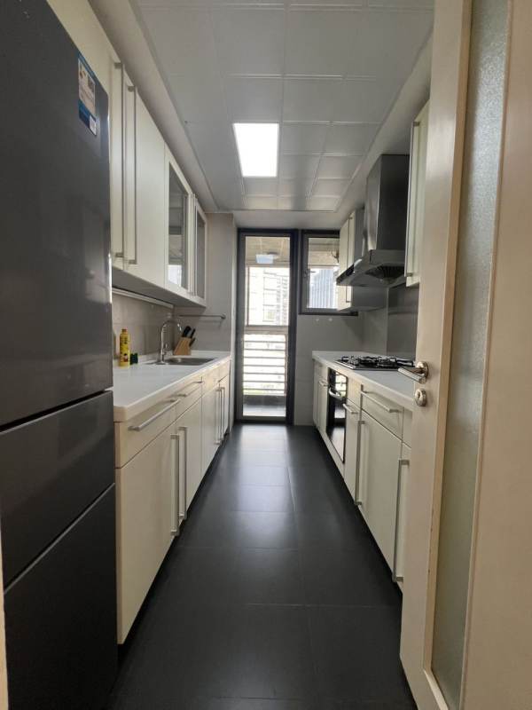 3 bedrooms, 2 bathrooms, 10th floor with open balcony, central ac, oven and dryer, 140 sqm, it has gym and playground inside compound, walking distance to xujiahui station of line 1, 9 & 11, the price is 21.5K negotiable ~~