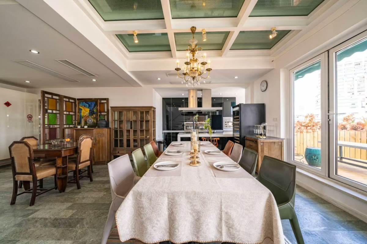 1 big bedroom, 1 living room, on high floor with big private terrace, 160 sqm with oven; dish washer and dryer; walking distance to xiaonanmen station of line 9, with lots of nice restaurants and coffee houses nearby, the price is 24K negotiable ~~~