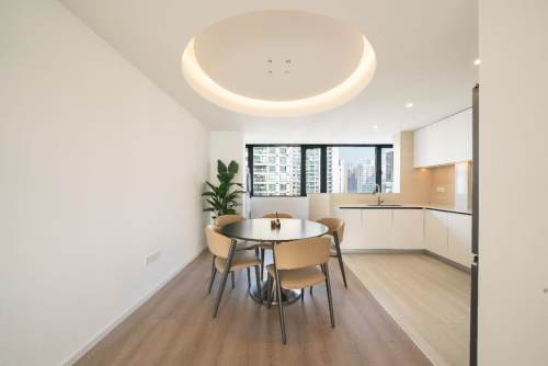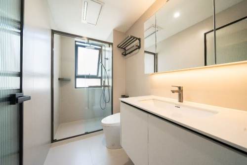 Spacious living and dining area with floor-to-ceiling windows. The master suite features a bathtub and smart toilet. Secondary bedrooms can be converted into a study or children’s room—perfect for multi-generational or two-child families.